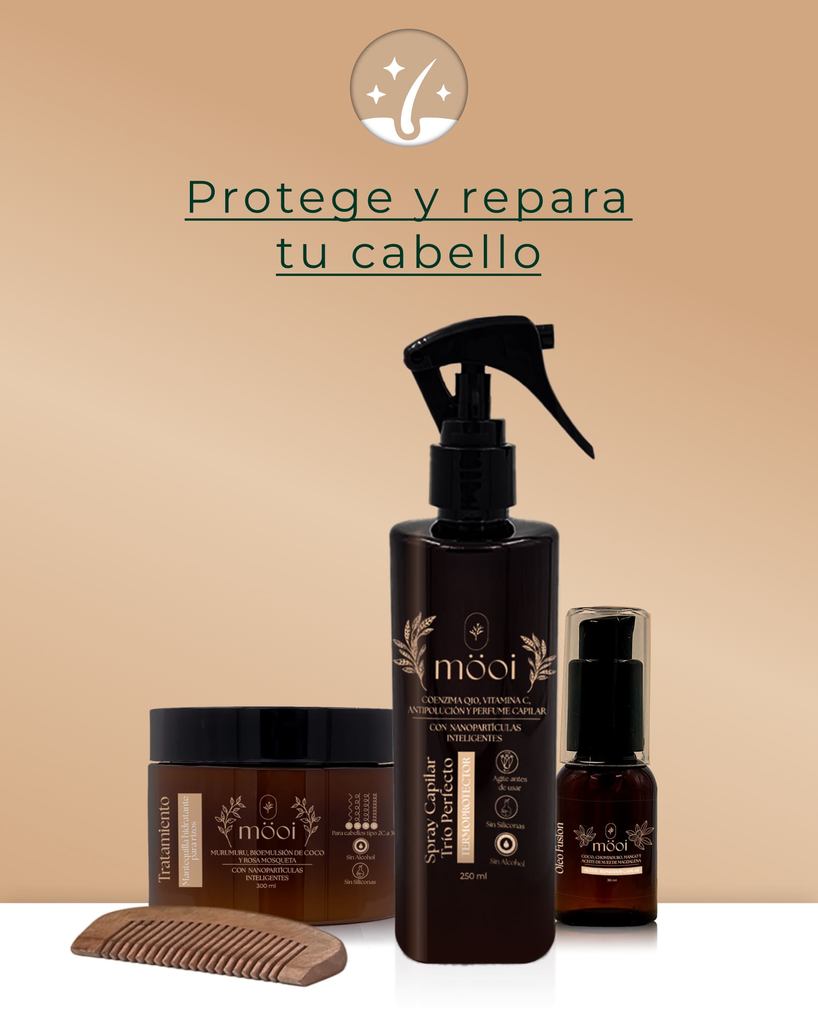 - Tratamiento: Después de lavar con nuestro Shampoo Möoi® Químicamente Procesados, aplique el Tratamiento Möoi® Mantequilla Hidratante para rizos evitando la raíz y deje actuar 30 minutos. Se recomienda intercalar el uso con el Acondicionador Möoi® Químicamente Procesados o Acondicionador Möoi® Crecimiento y nutrición.