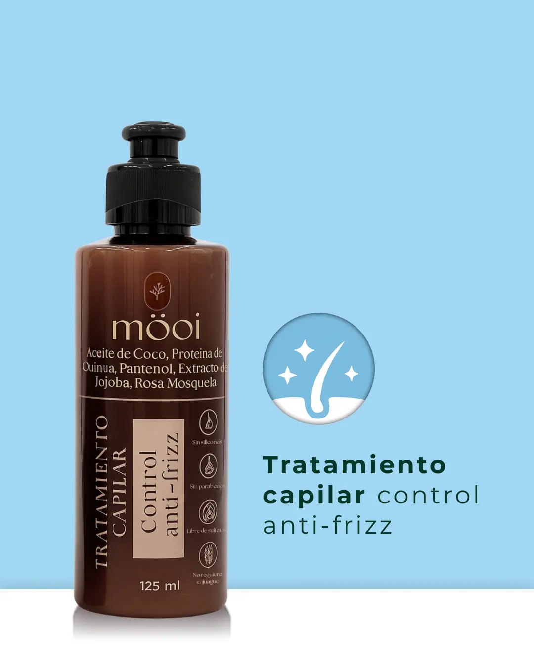 Controla el frizz al instante, no requiere enjuague y puede ser de uso diario, ideal para combatir el frizz sin comprometer el estilo ni la textura natural de tu cabello.